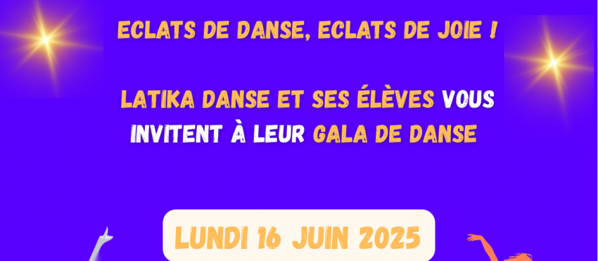 Ne manquez pas le gala de danse de Latika Danse qui aura lieu le lundi 16 juin à 19h30 à la Maison des Associations.