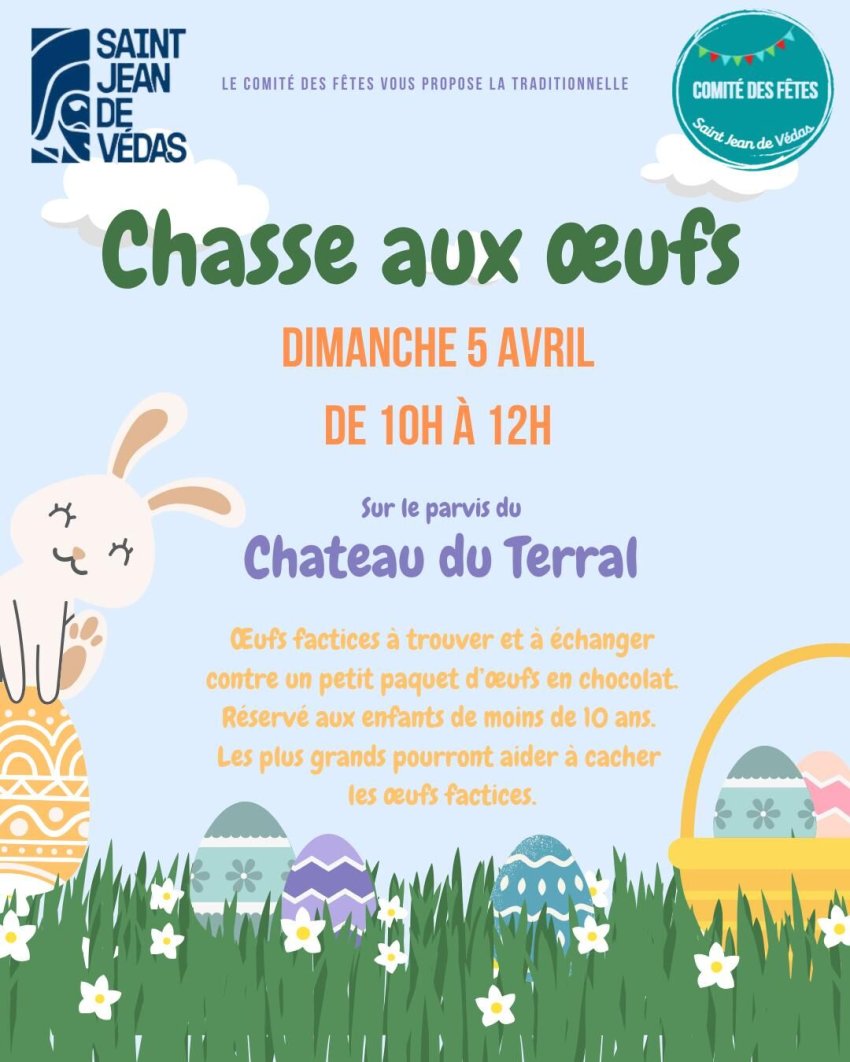 À l'occasion de Pâques, l'association du Comité des fêtes organise une chasse aux œufs dans le parc du Terral le 5 avril !