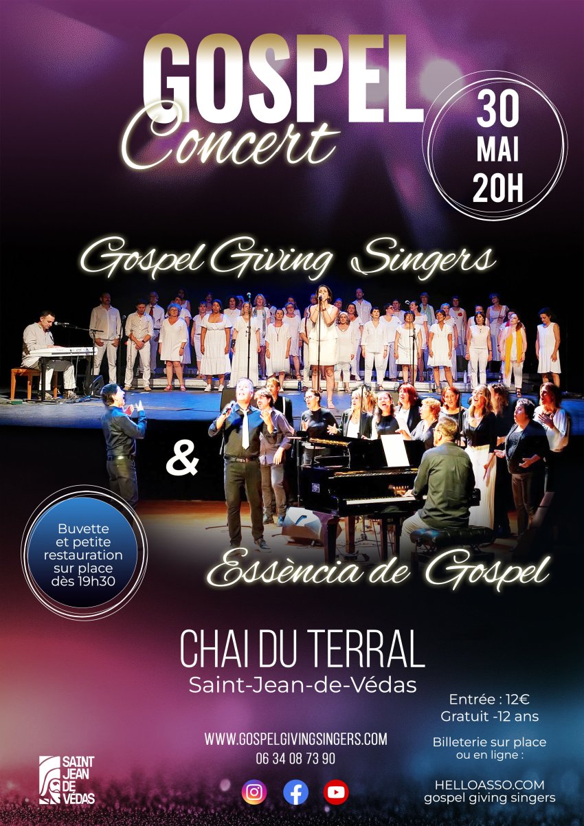 Les chorales Gospel Giving Singers et Essencia Gospel vous donnent rendez-vous au chai du Terral pour découvrir les grands classiques du Gospel.