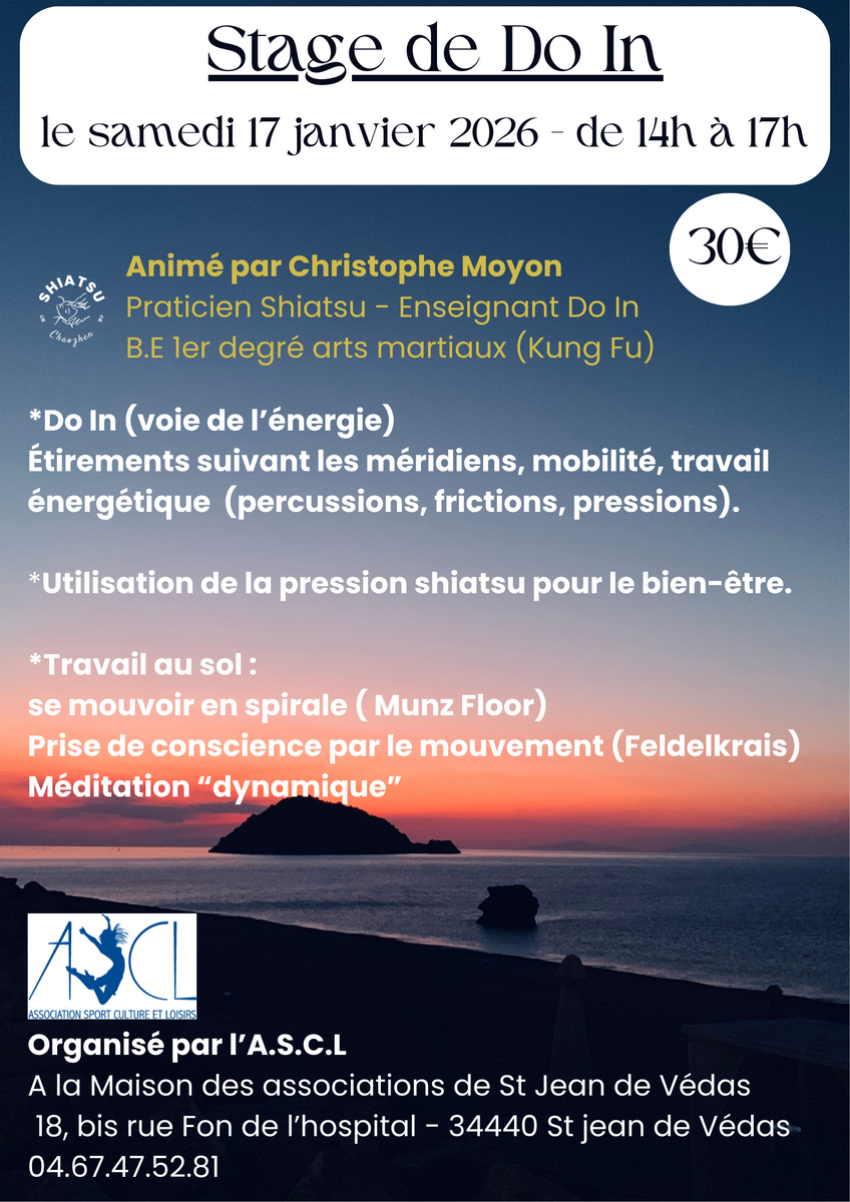 Samedi 17 janvier, l’ASCL organise un stage de Do In de 14h à 17h.